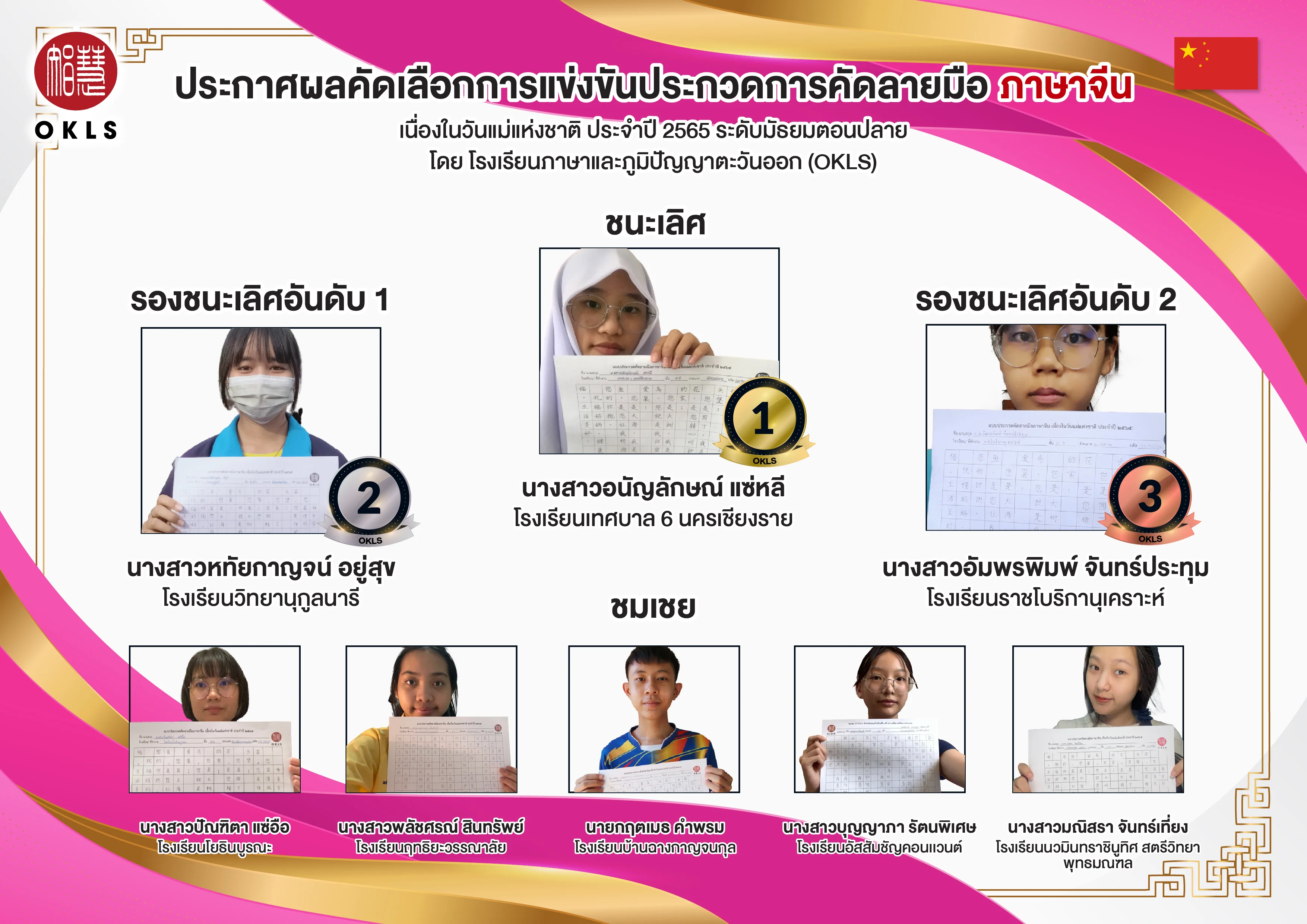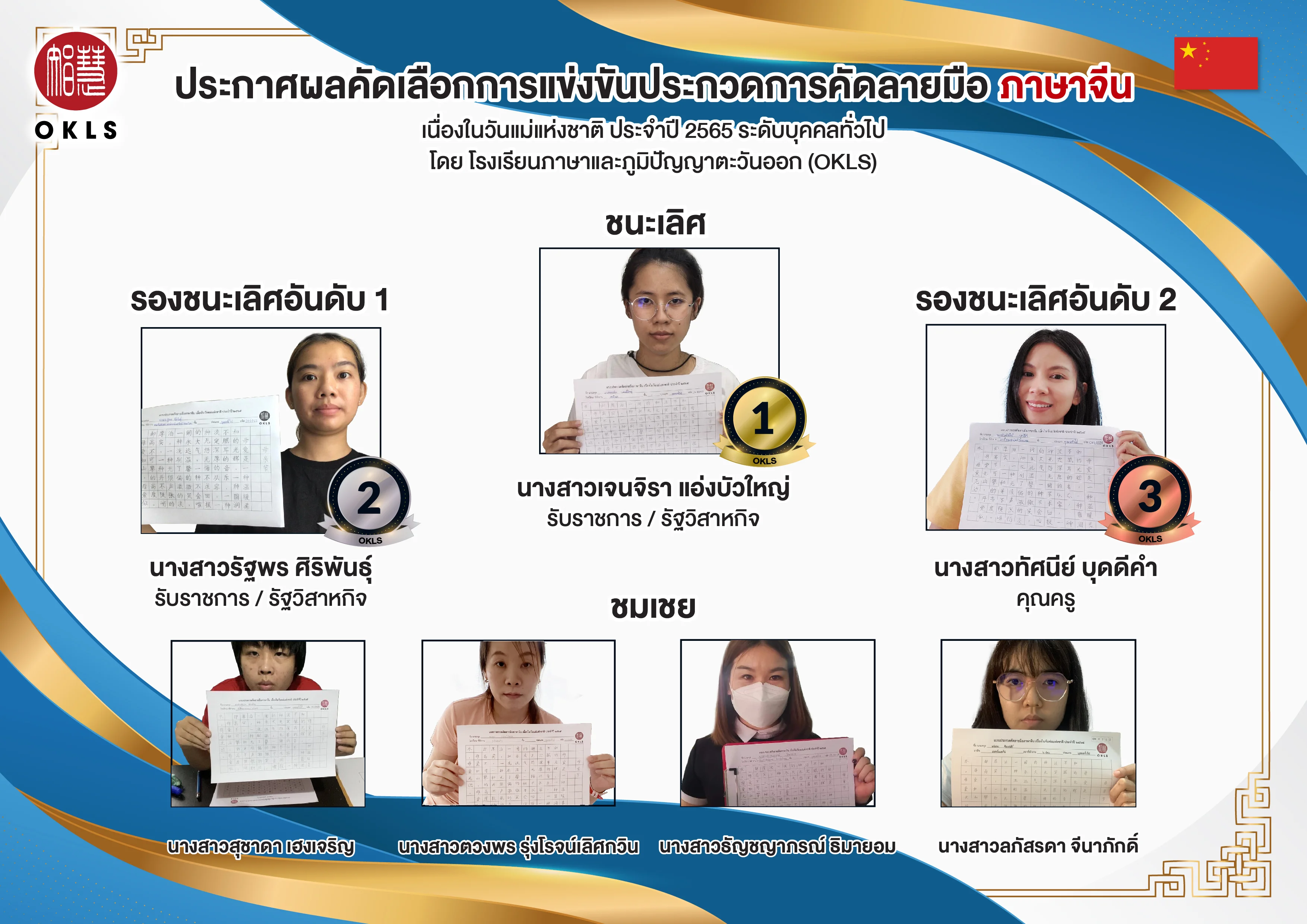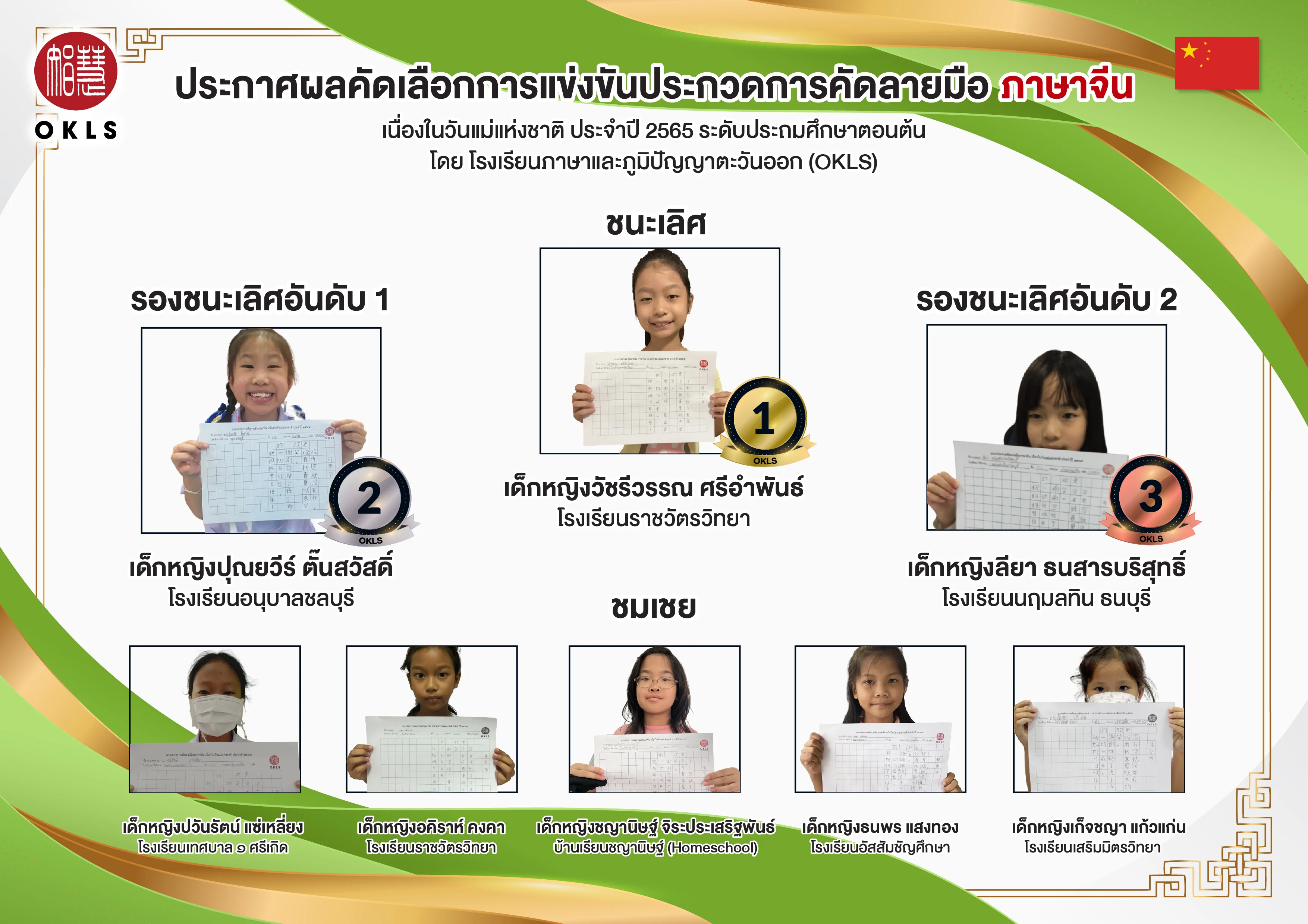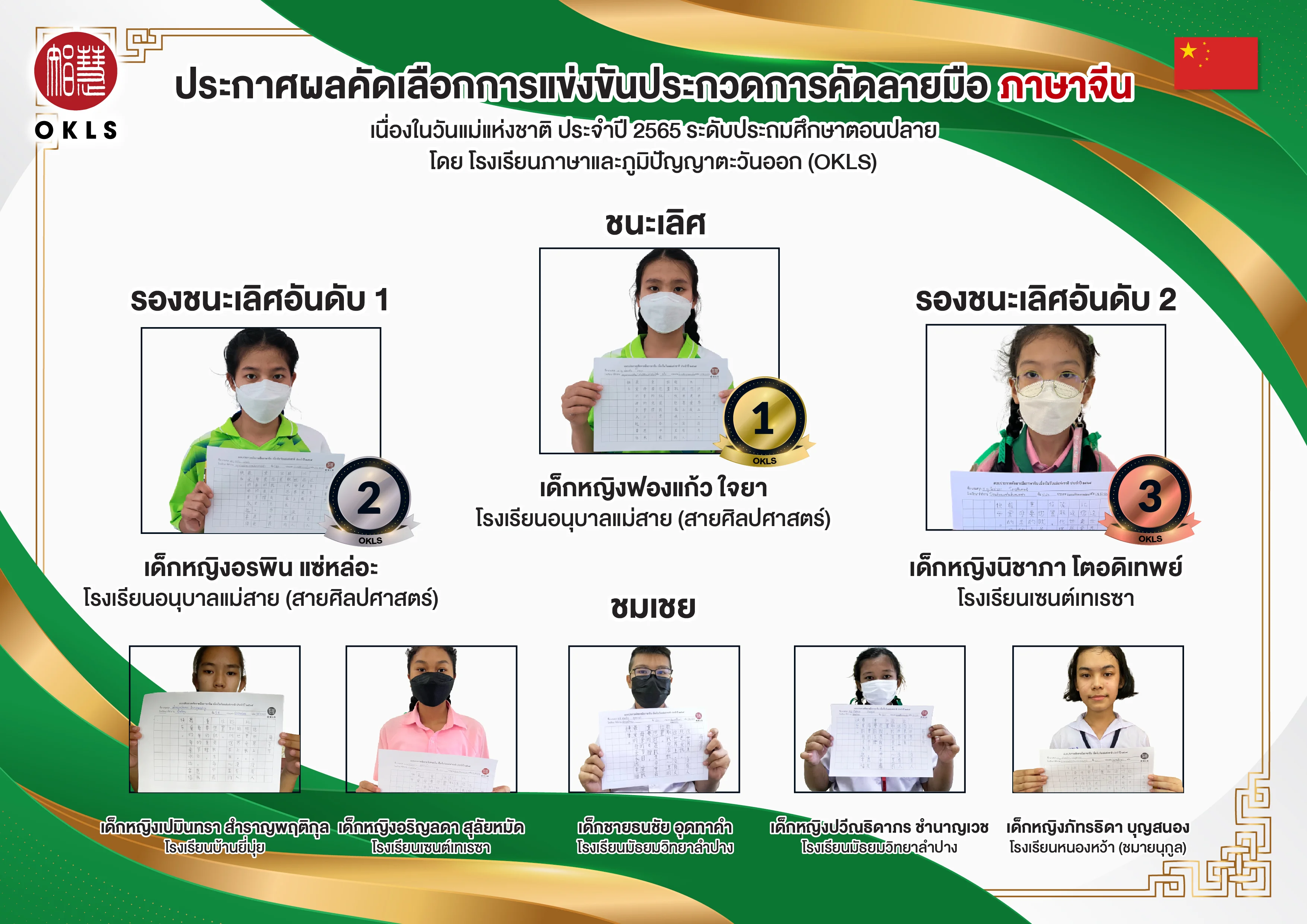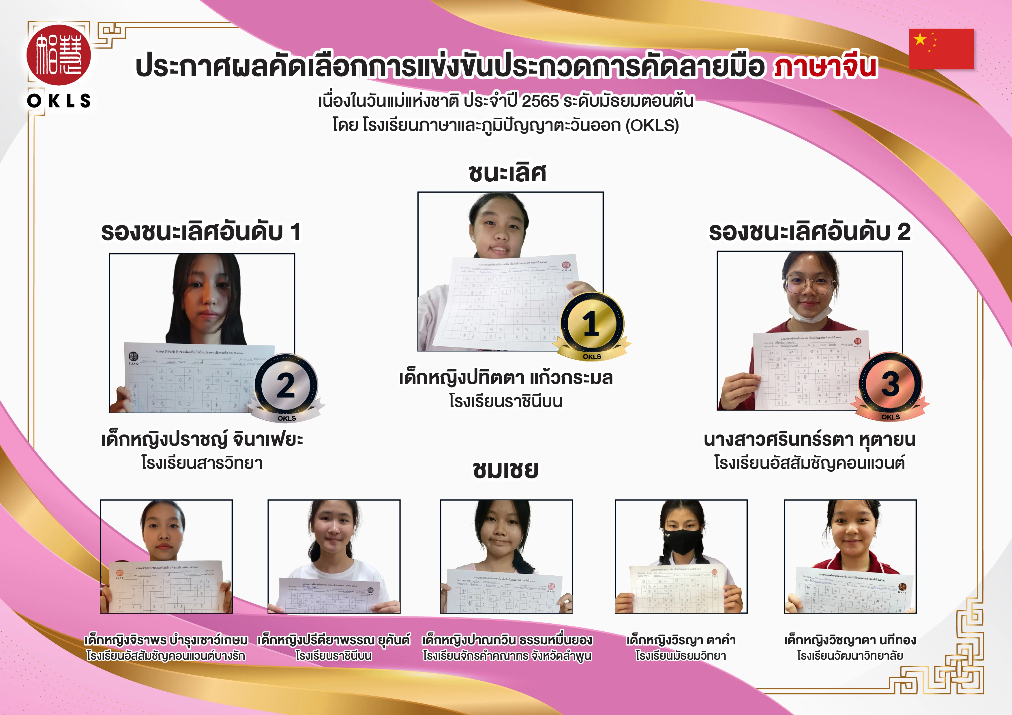 ประกาศผลการแข่งขันคัดลายมือภาษาจีน 2565