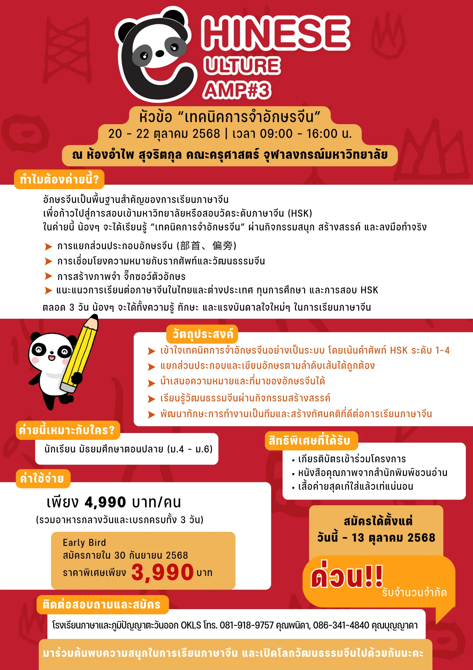 รายละเอียดค่ายเรียนภาษาจีน ปิดเทอม 2568
