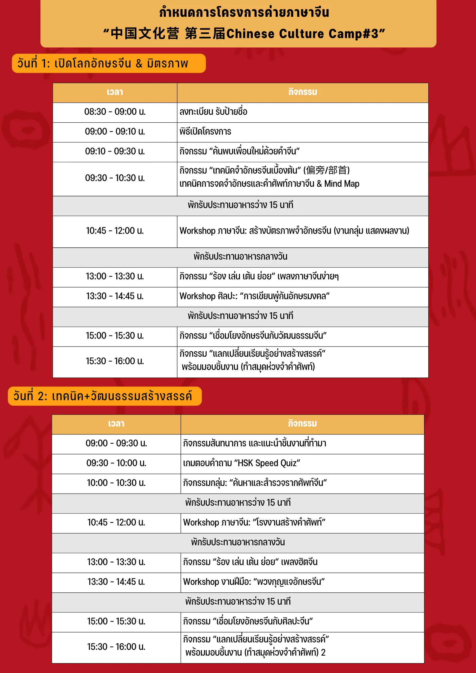 📌 กิจกรรมเรียนรู้ภาษาจีน + วัฒนธรรมจีนสุดสร้างสรรค์