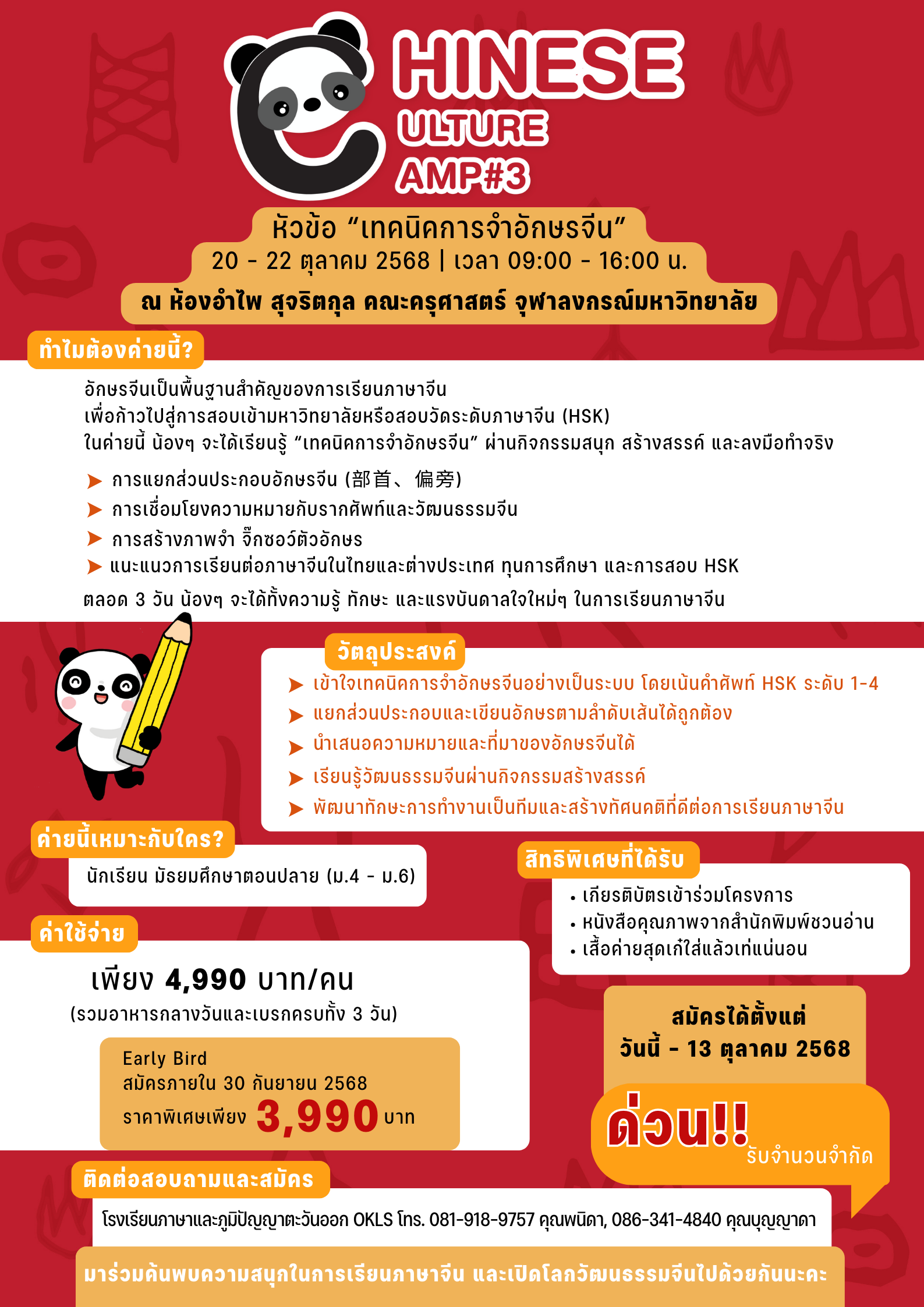 👥 เหมาะสำหรับ นักเรียน ม.4–6 ที่สนใจ เรียนภาษาจีนช่วงปิดเทอมตุลาคม 2568 และอยากพัฒนาทักษะภาษา